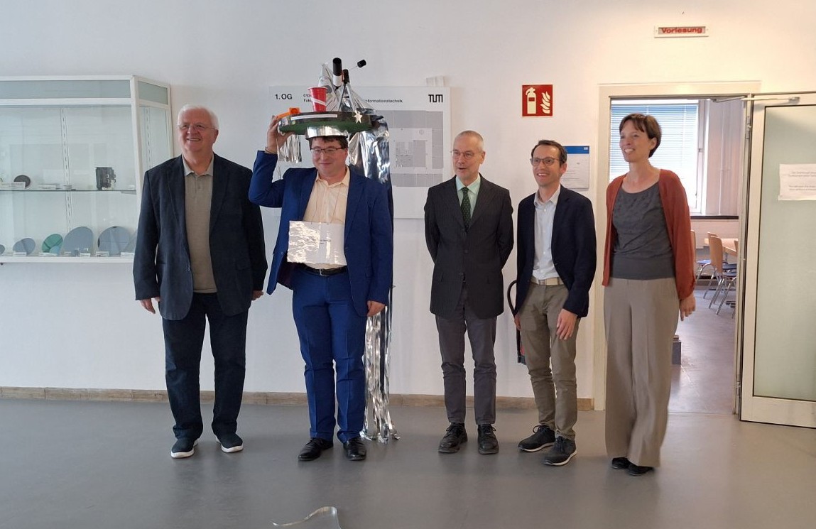 Our chair congratulates Dr.-Ing. Seyfert on the successful defence of his dissertation. The dissertation, supervised by Prof. Gabriele Schrag and Prof. Norbert Schwesinger, is entitled ‘Evaluation of the direct and indirect flexoelectric effect in inorganic and organic dielectrics’ and systematically investigates the coupling between mechanical strain gradients and electrical polarisation.